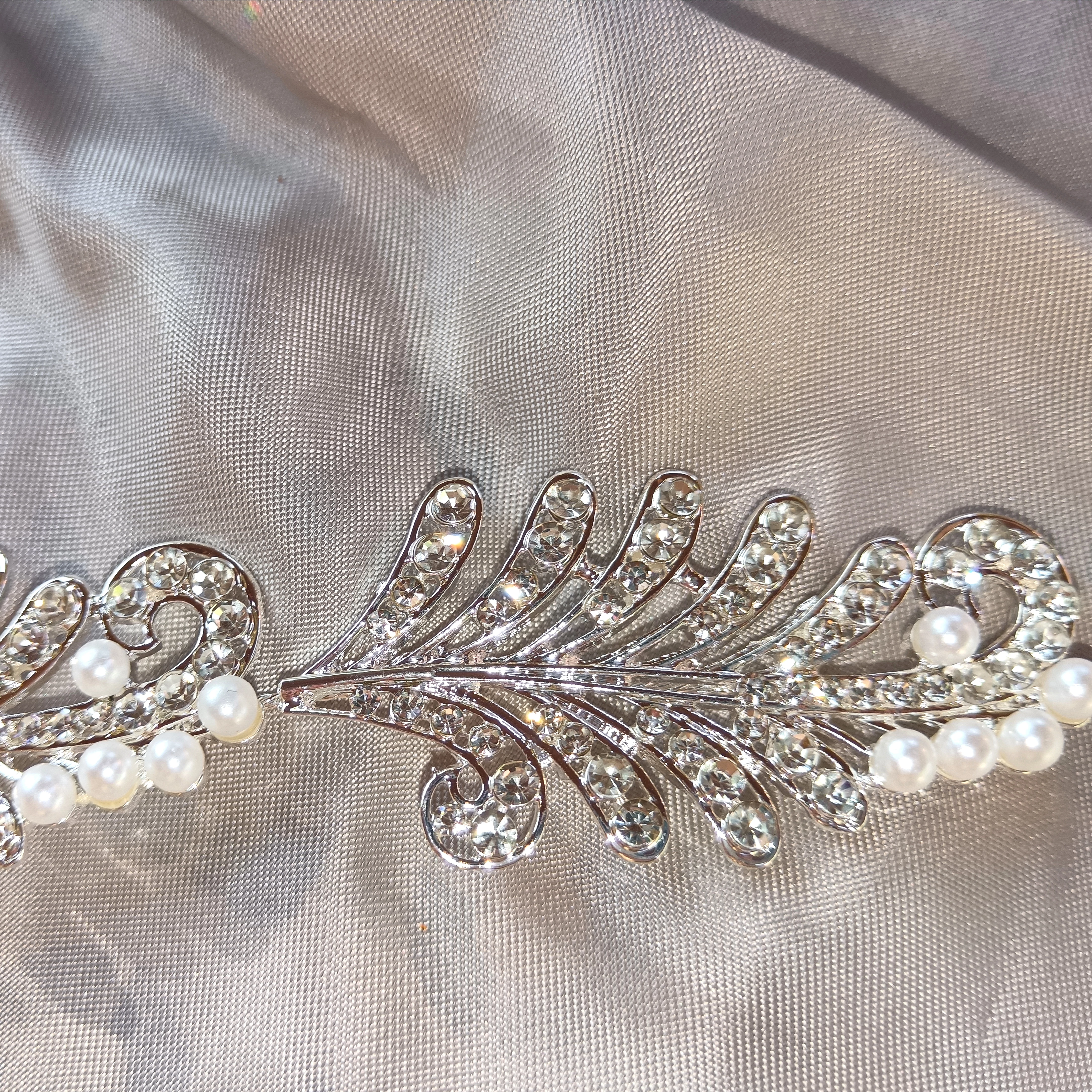 Csodaszép fejdísz a nagy napra, a két végén erős hullámcsat van rögzítve. A fejdísz tekla és cirkónia kövekkel van díszítve.