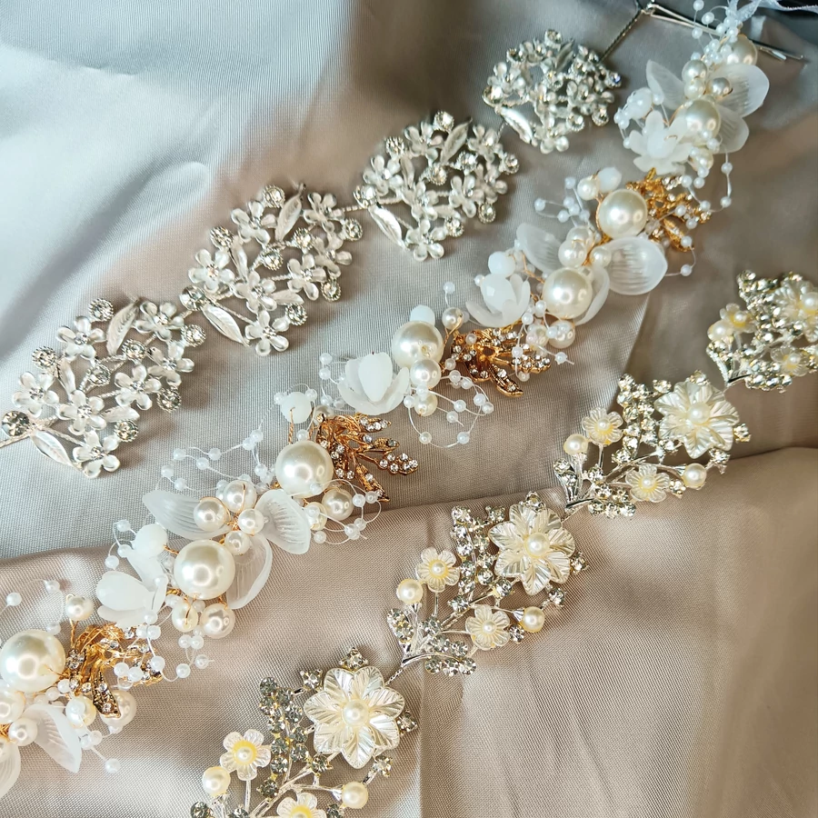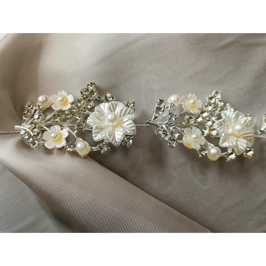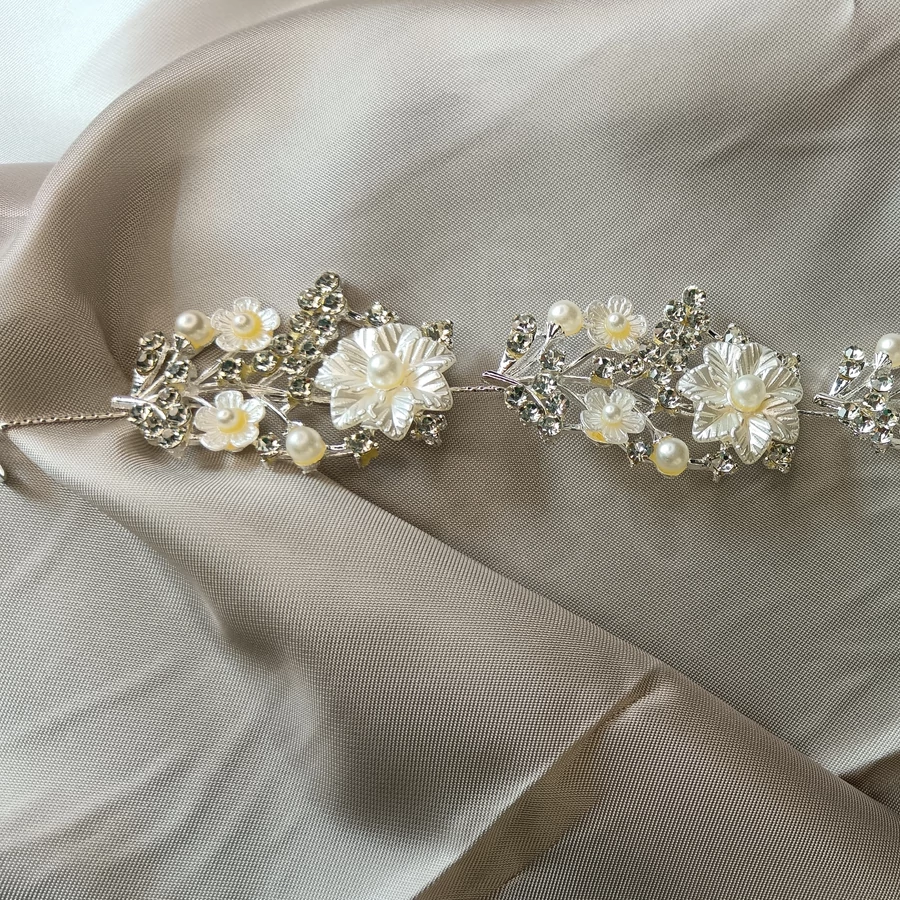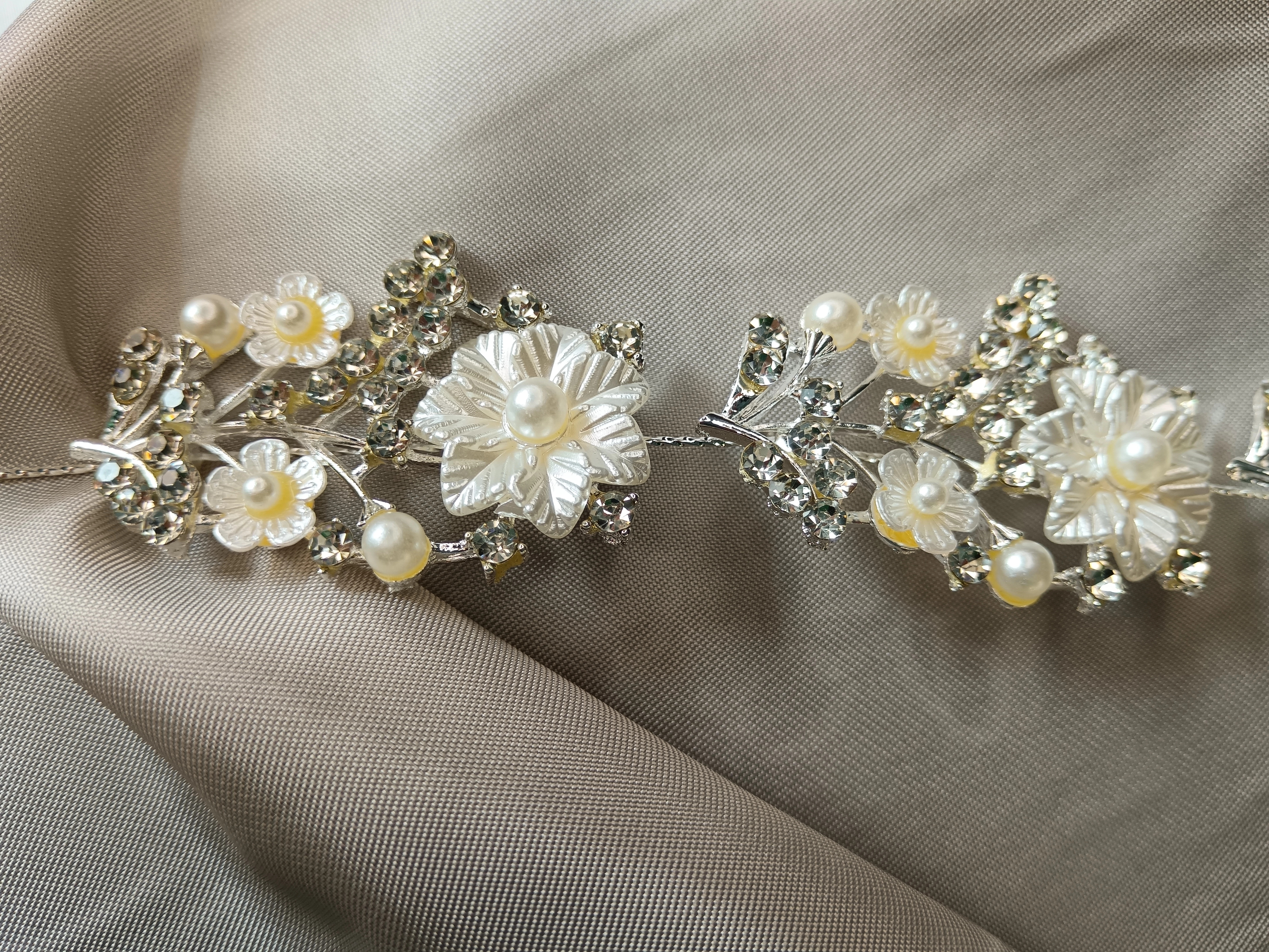 Csodaszép menyasszonyoknak, vagy elsőáldozóknak való hajdísz. Kontyba vagy kiengedett hajba is tökéletes. A hajdísz végén egy-egy erős hullámcsat van, amivel könnyedén bele illeszthető a hajba a dísz.