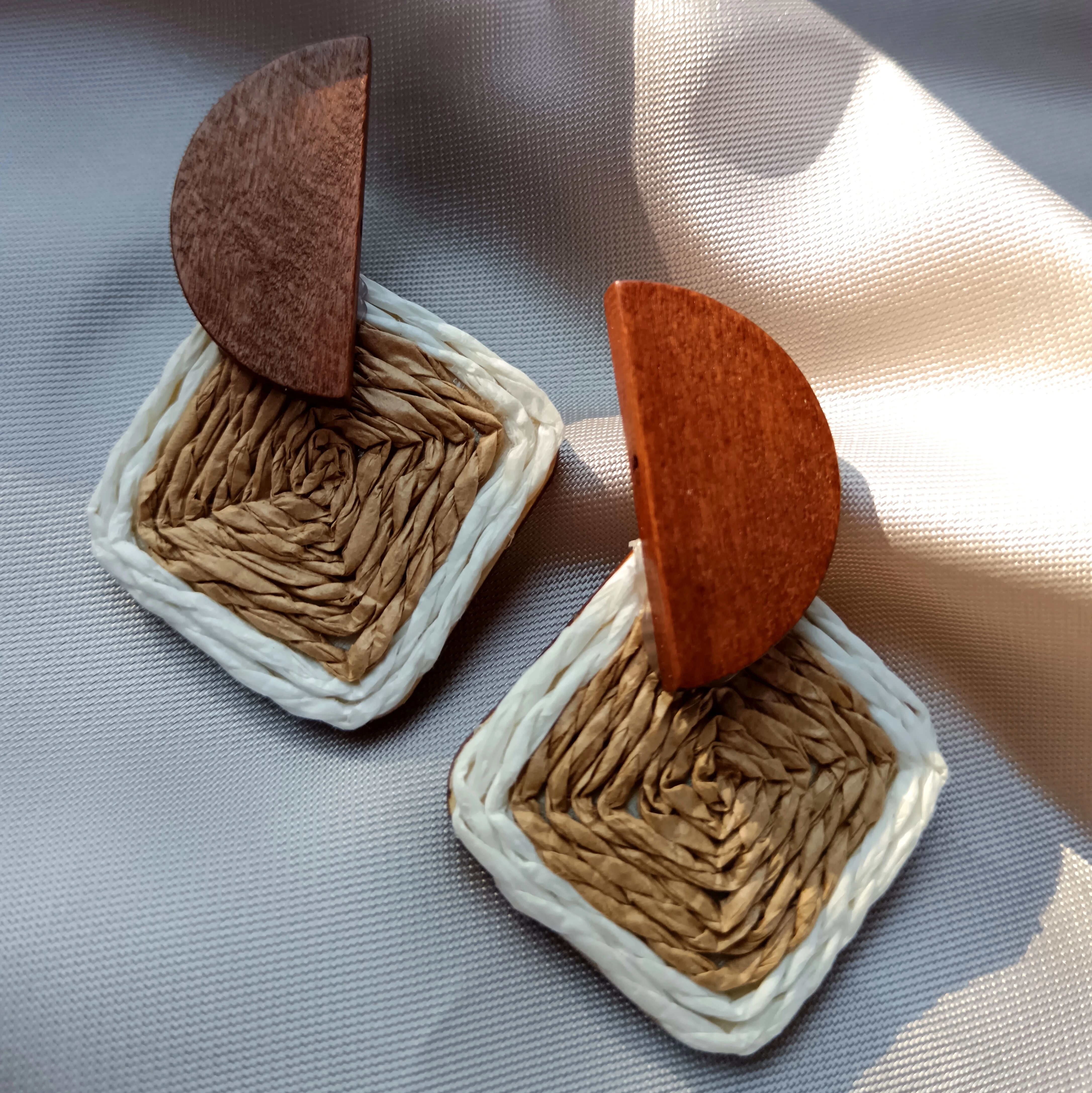 Gyékény különleges formájú fülbevaló, barna
