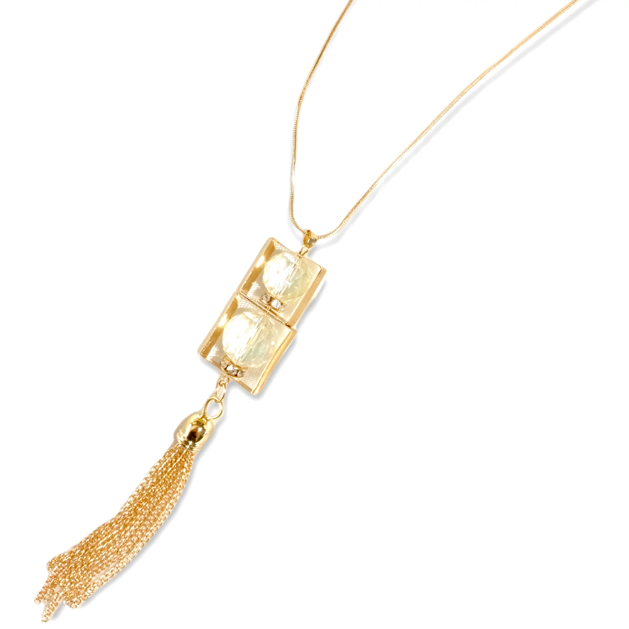 HOSSZÚ ARANY SZÍNŰ NYAKLÁNC- ÜVEGKŐ MEDÁLLAL