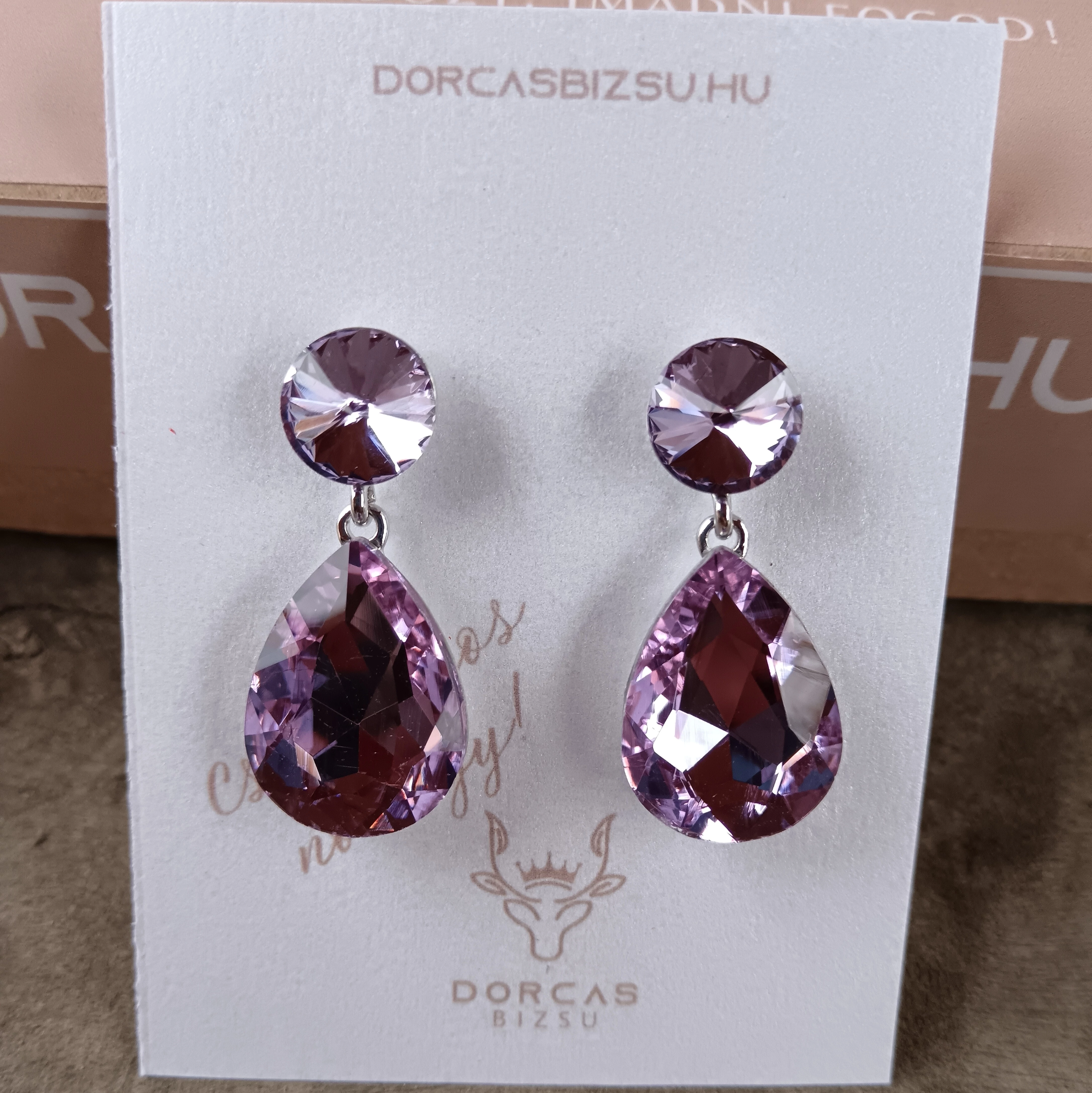 Alkalmi lila köves fülbevaló, csodaszépen visszaverődik a fénye