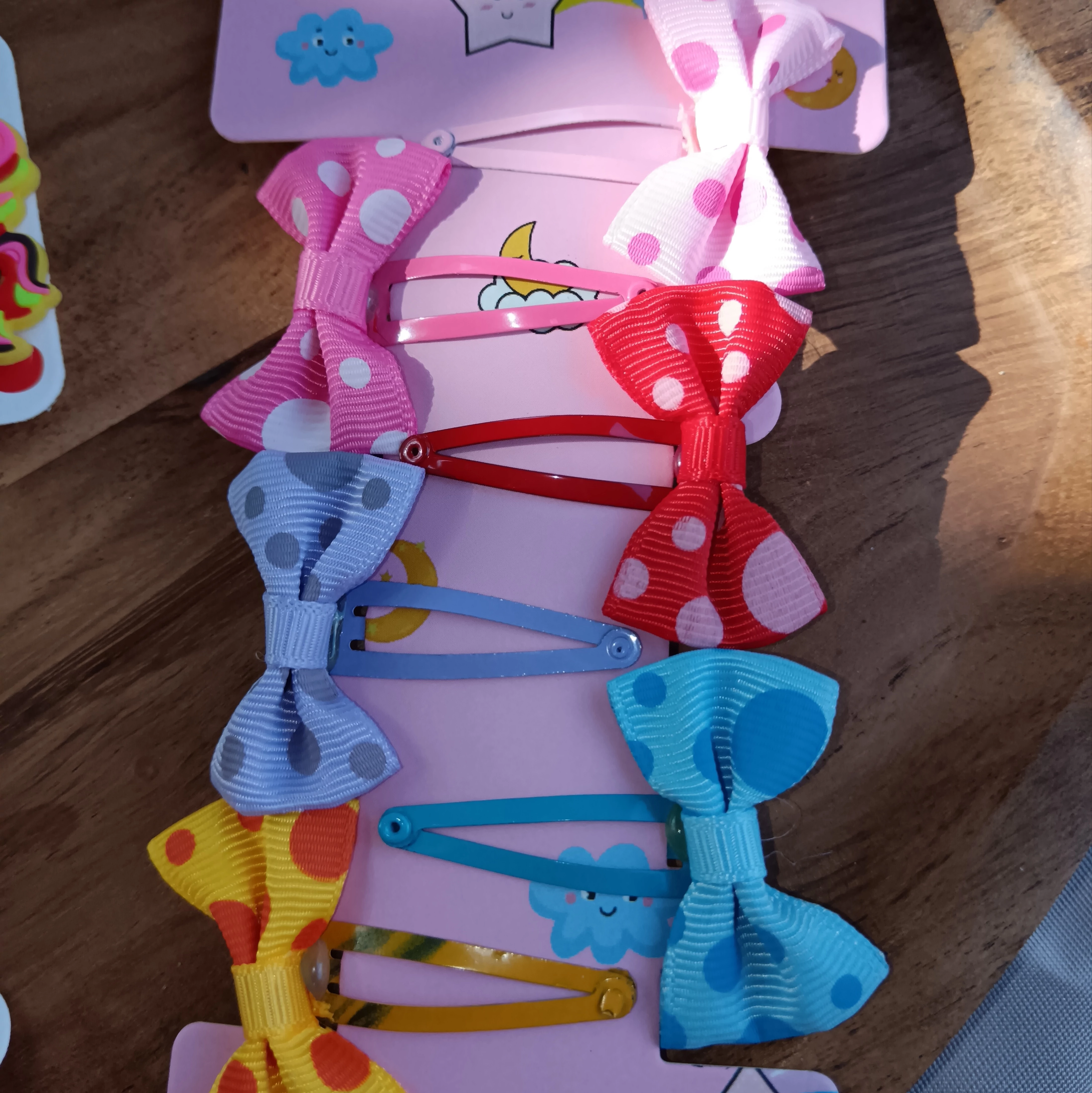 4cm hossz csitcsatok, Masnis díszekkel. Szett tartalma: 6 db masnis csatot küldünk egy szett vásárlása esetén