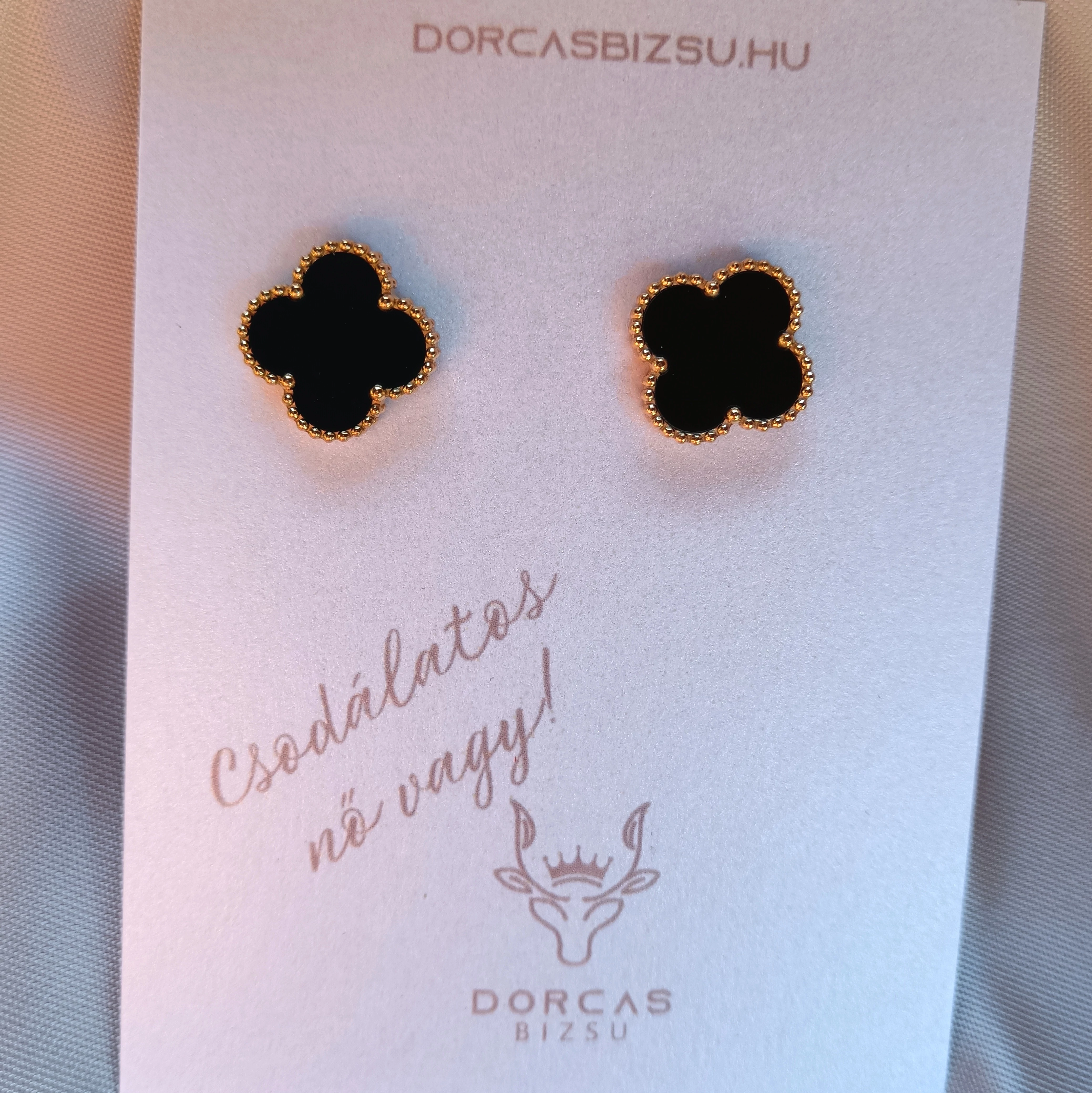 Nemesacél BLACK lóhere fülbevaló arany