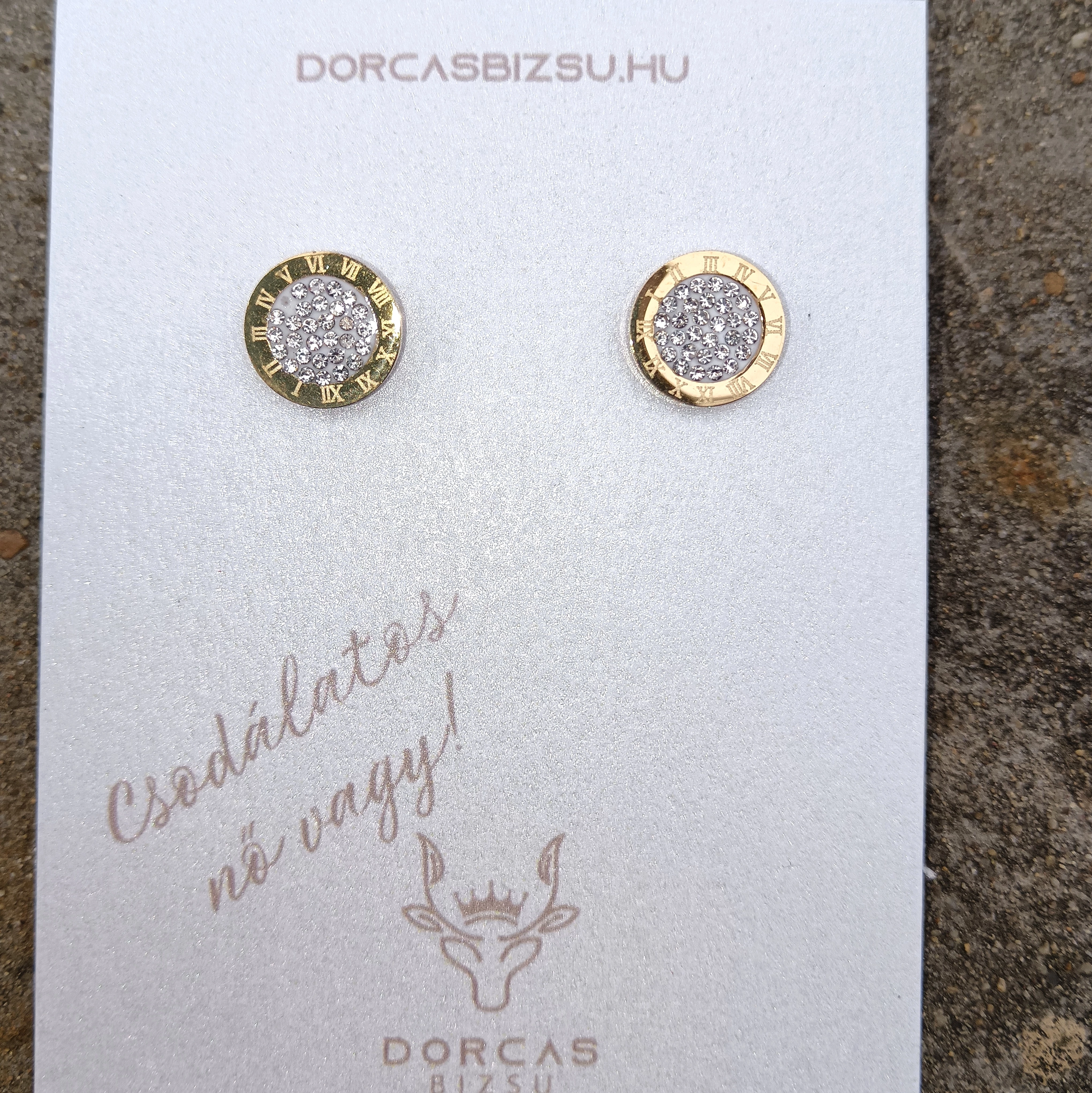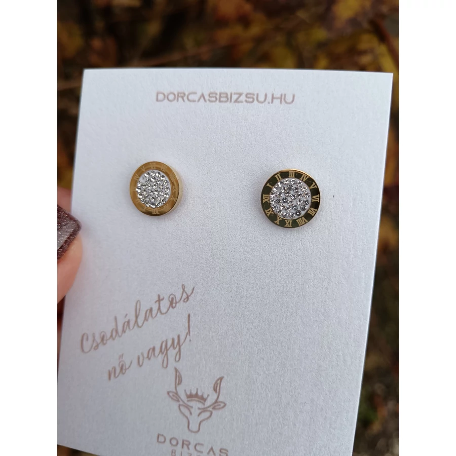 Római számok vannak a külső íven, és ragasztott cirkónia kövek a belső lapon.