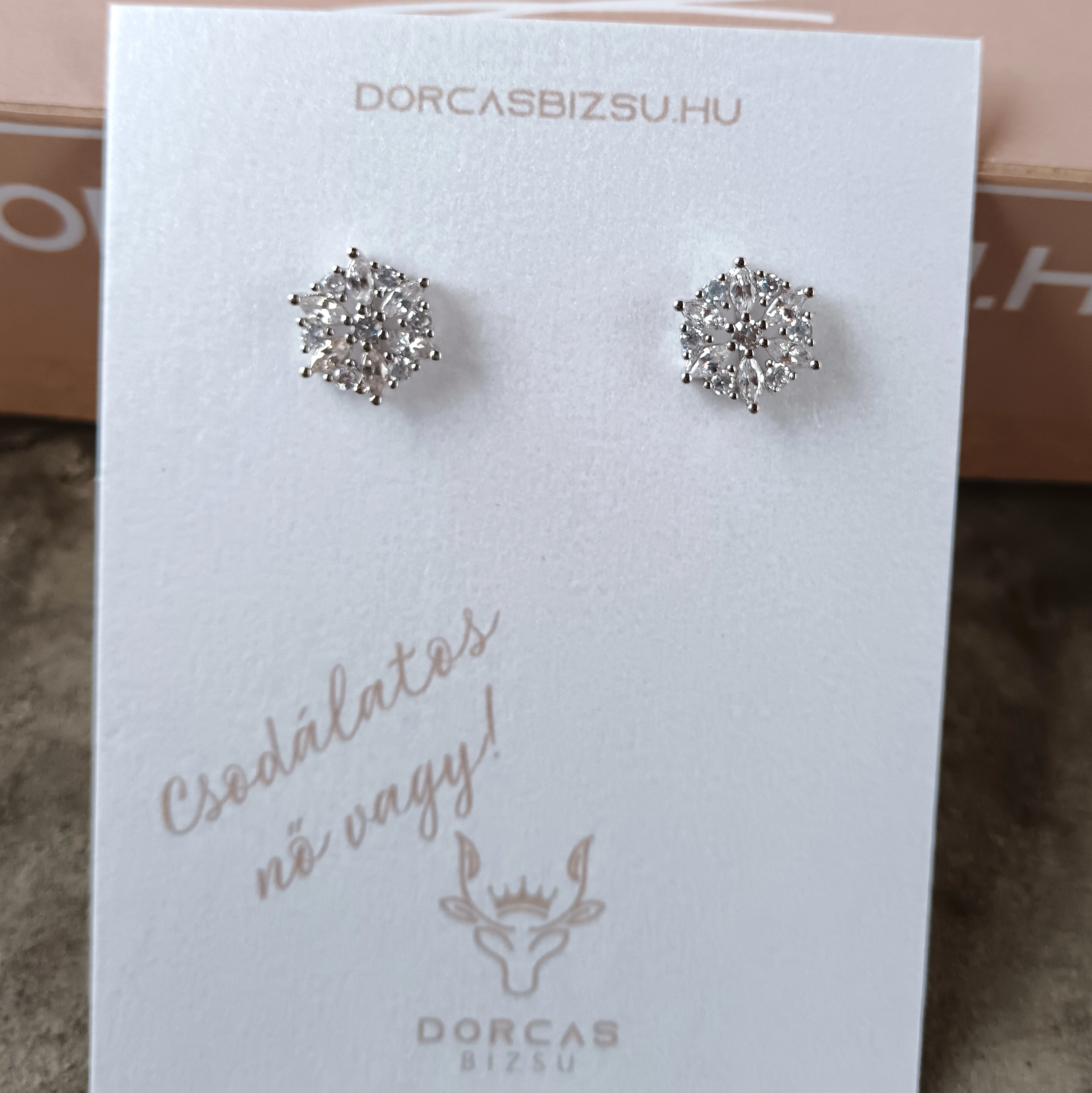 Antiallergén és bőrbarát nemesacél fülbevaló. Virágos, sok köves