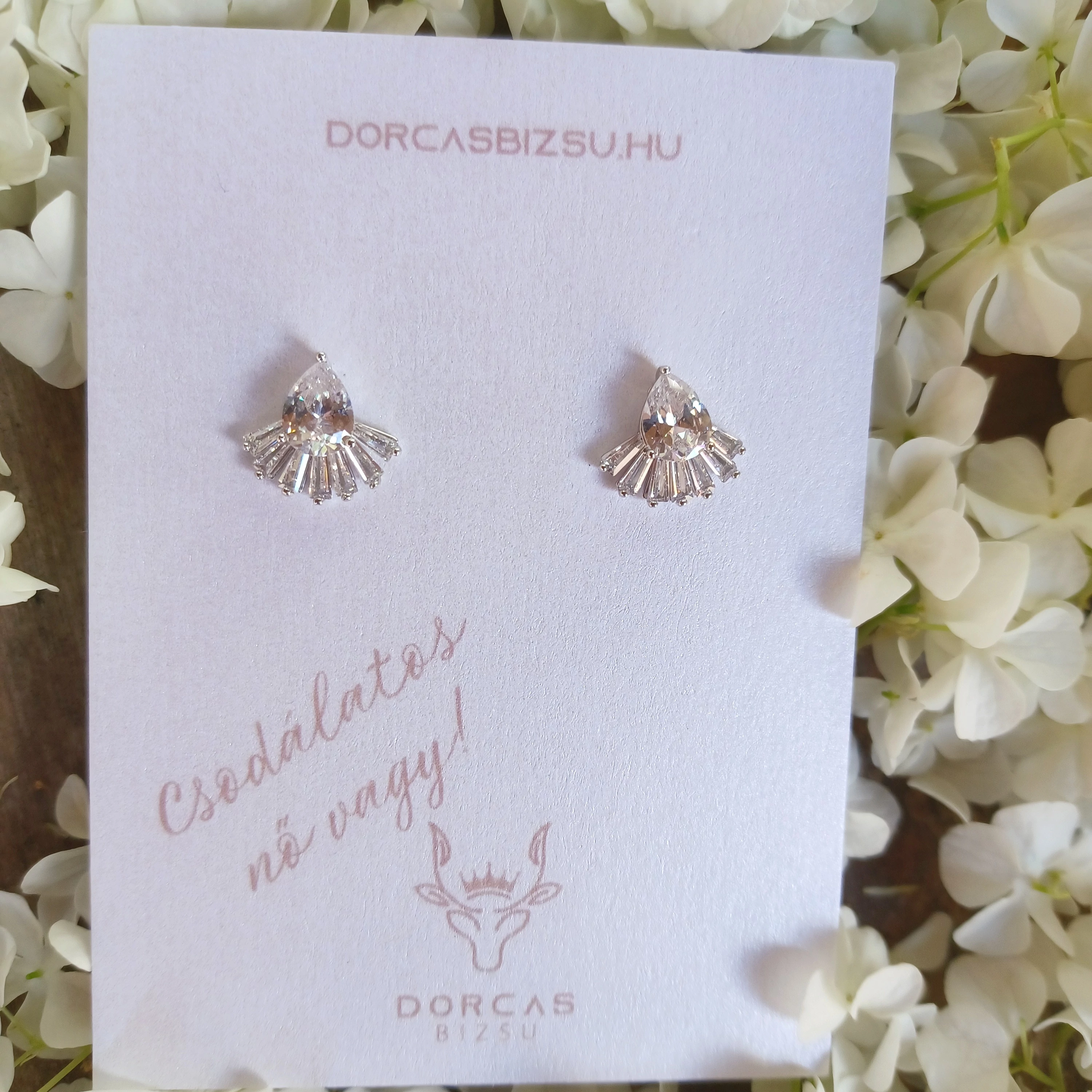 Csepp alakú, csodaszép ragasztott köves nemesacél fülbevaló.