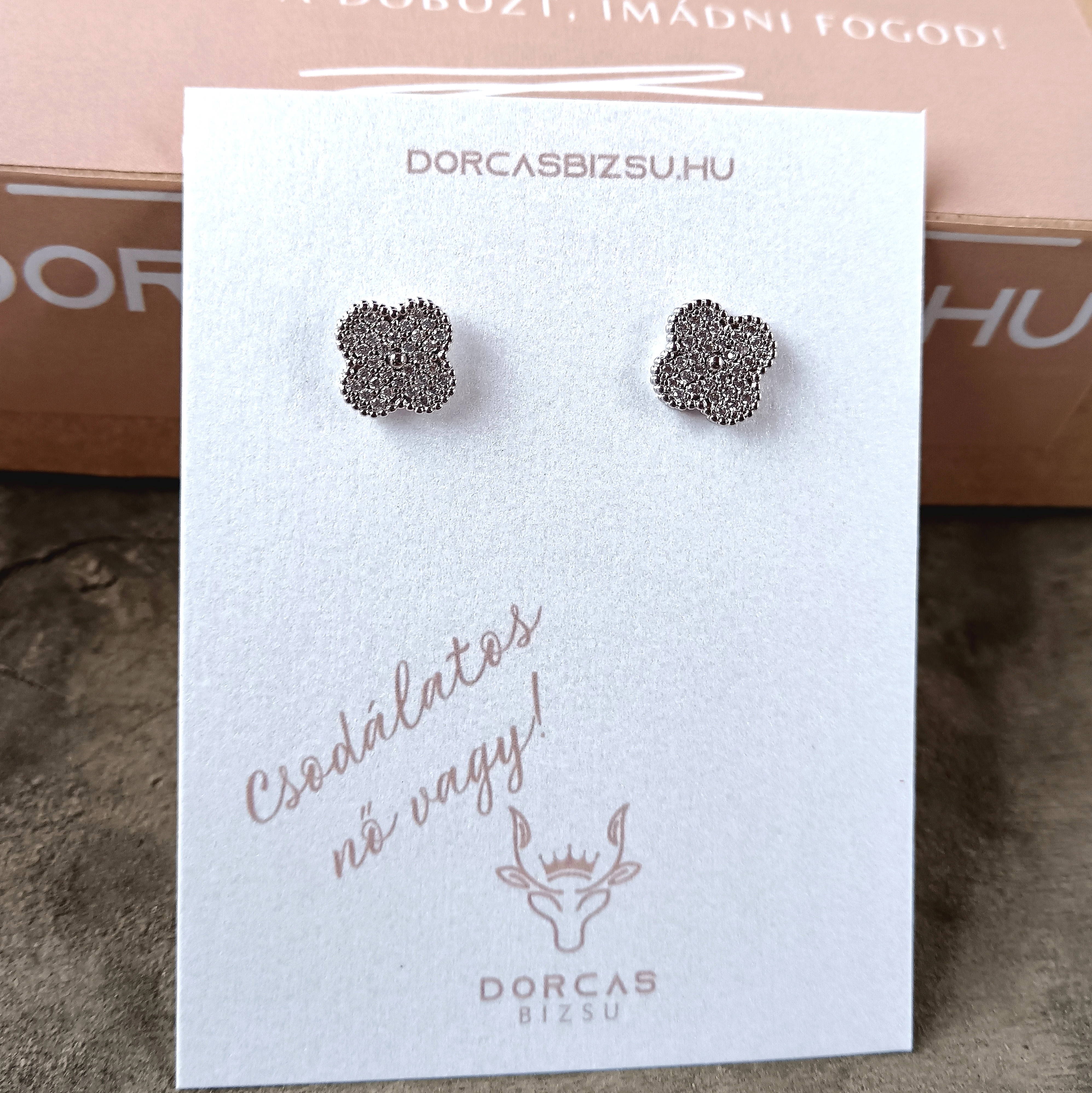 Antiallergén és bőrbarát nemesacél fülbevaló, kereszt alakú. Sok köves. Ezüst alapon.