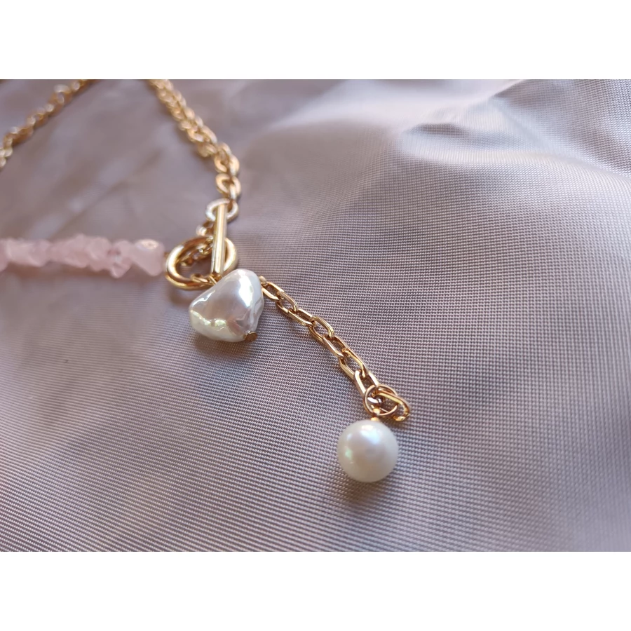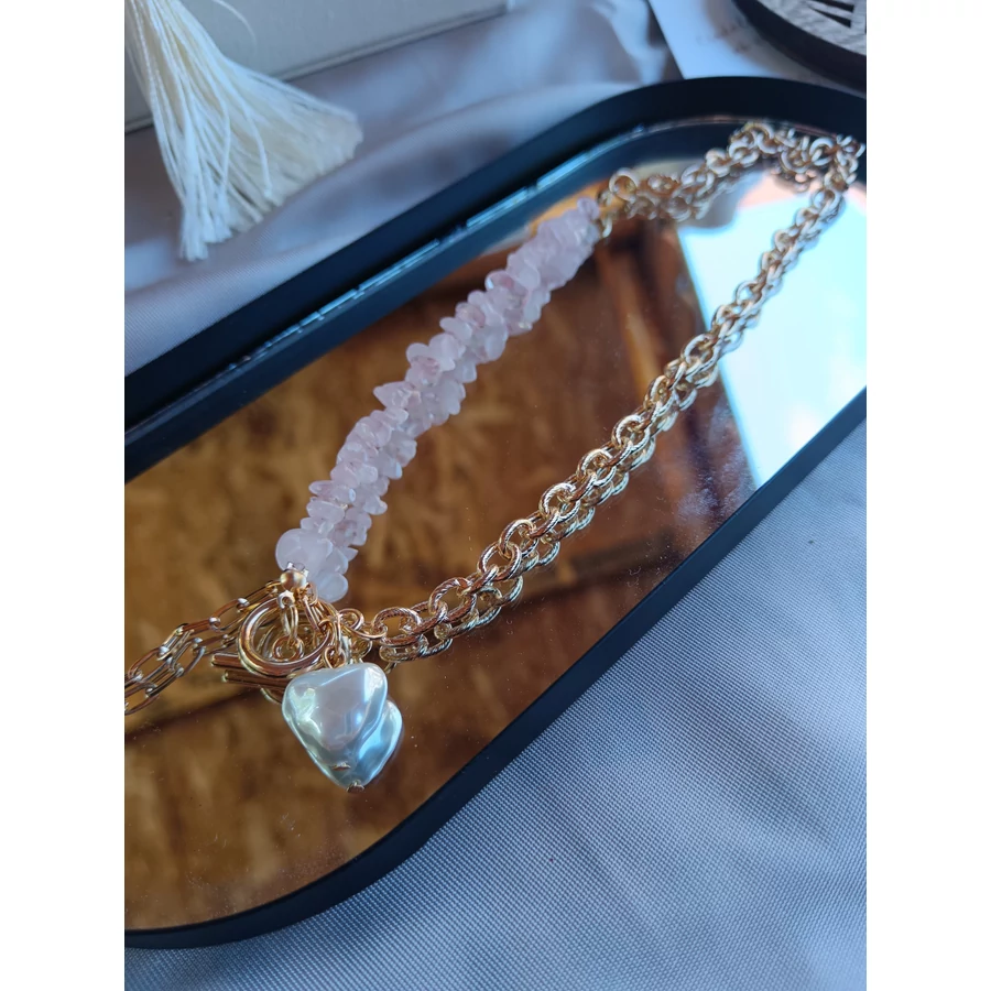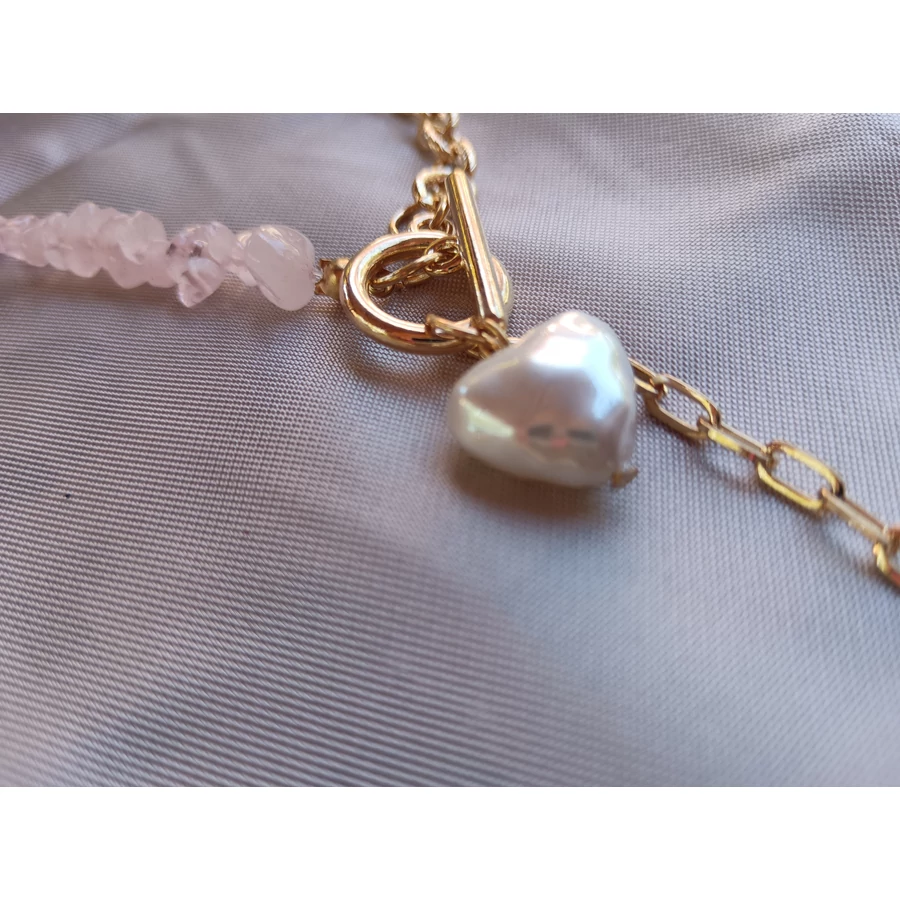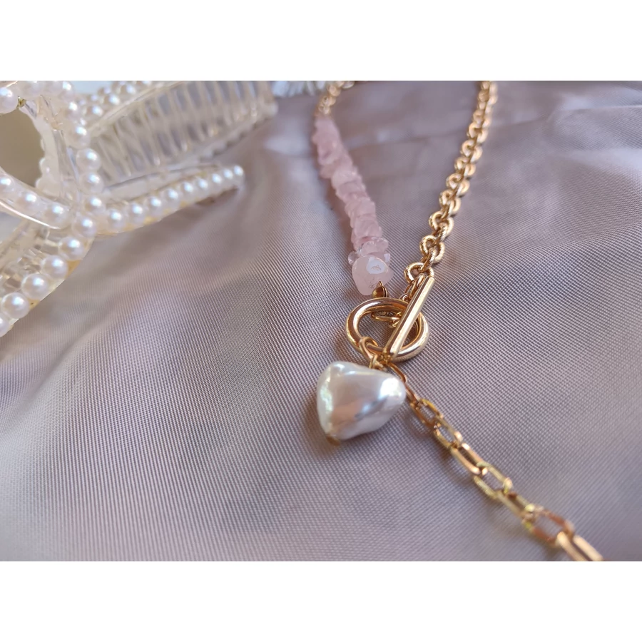Pink-Gold ásványköves nyaklánc (szívecskés medállal)