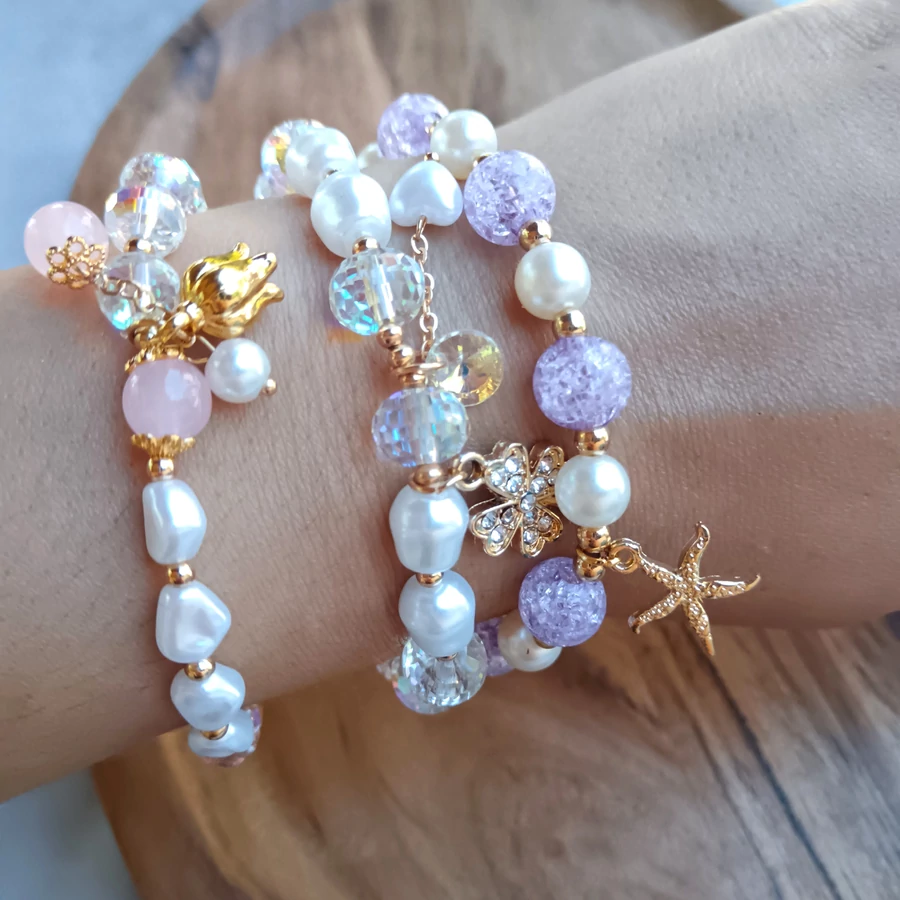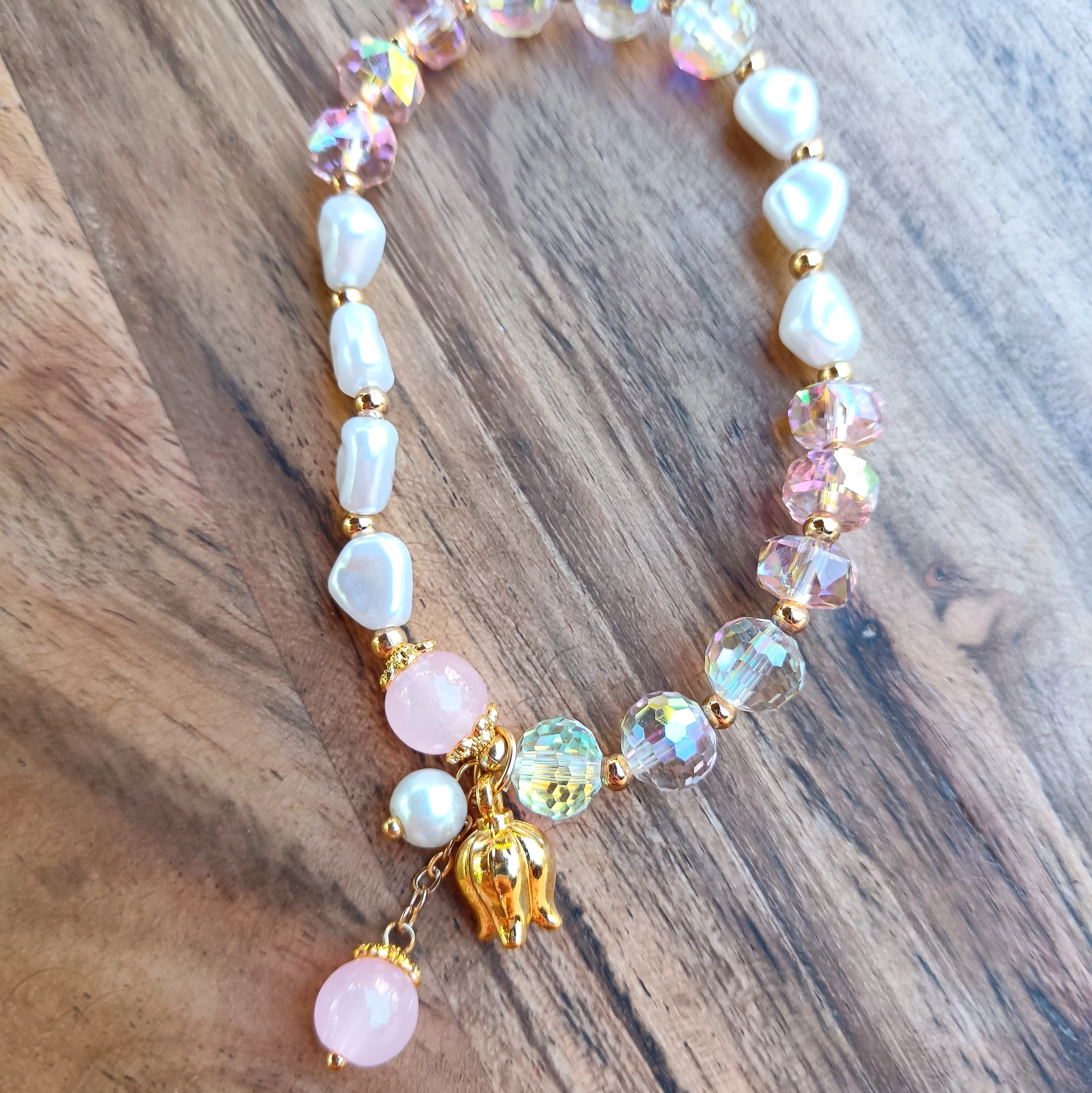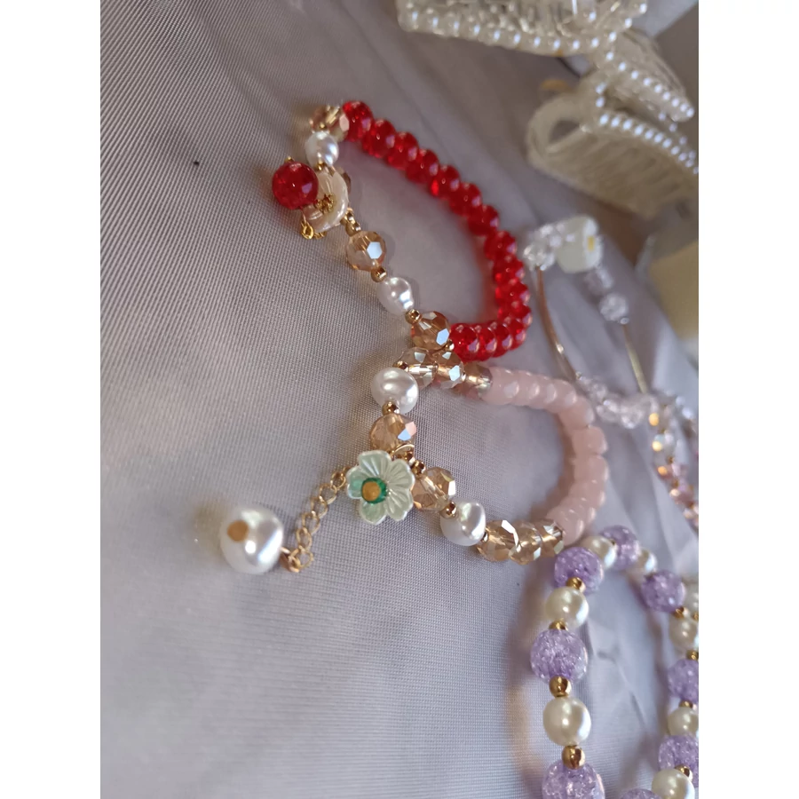 Pink tulipán karkötő üveggyöngyös