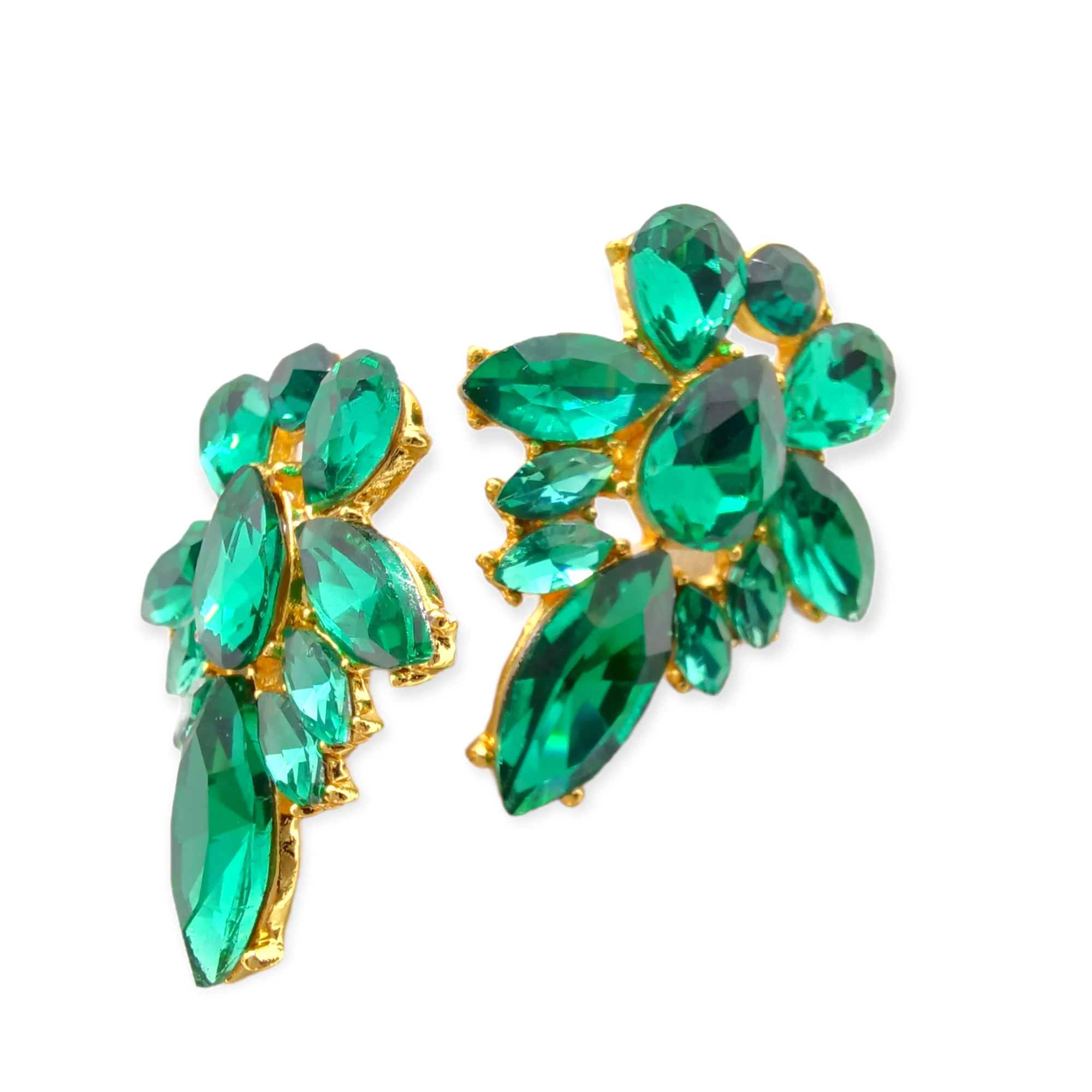 Virágmintára emlékeztető smaragdzöld kövekkel kirakott fülbevaló