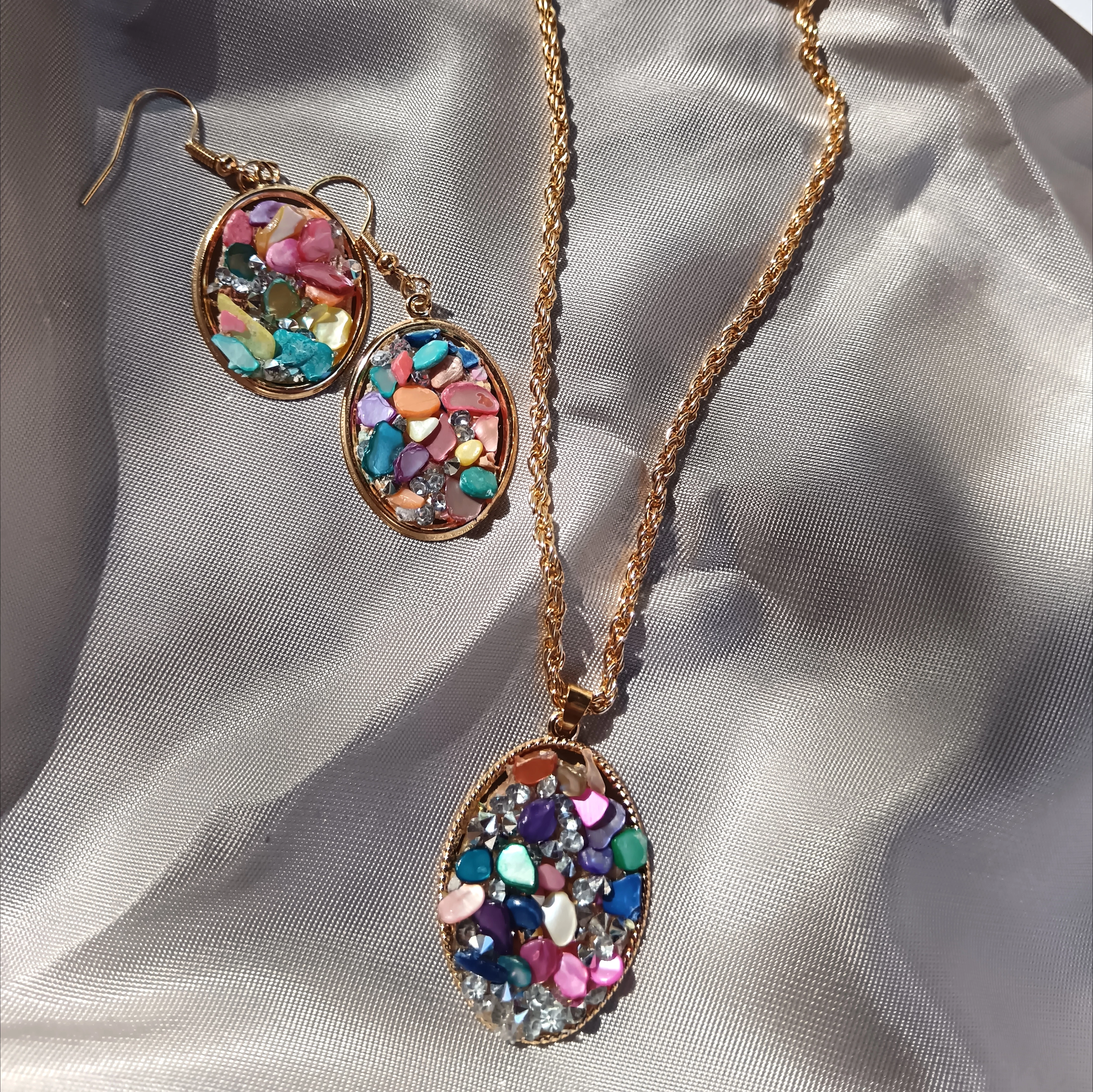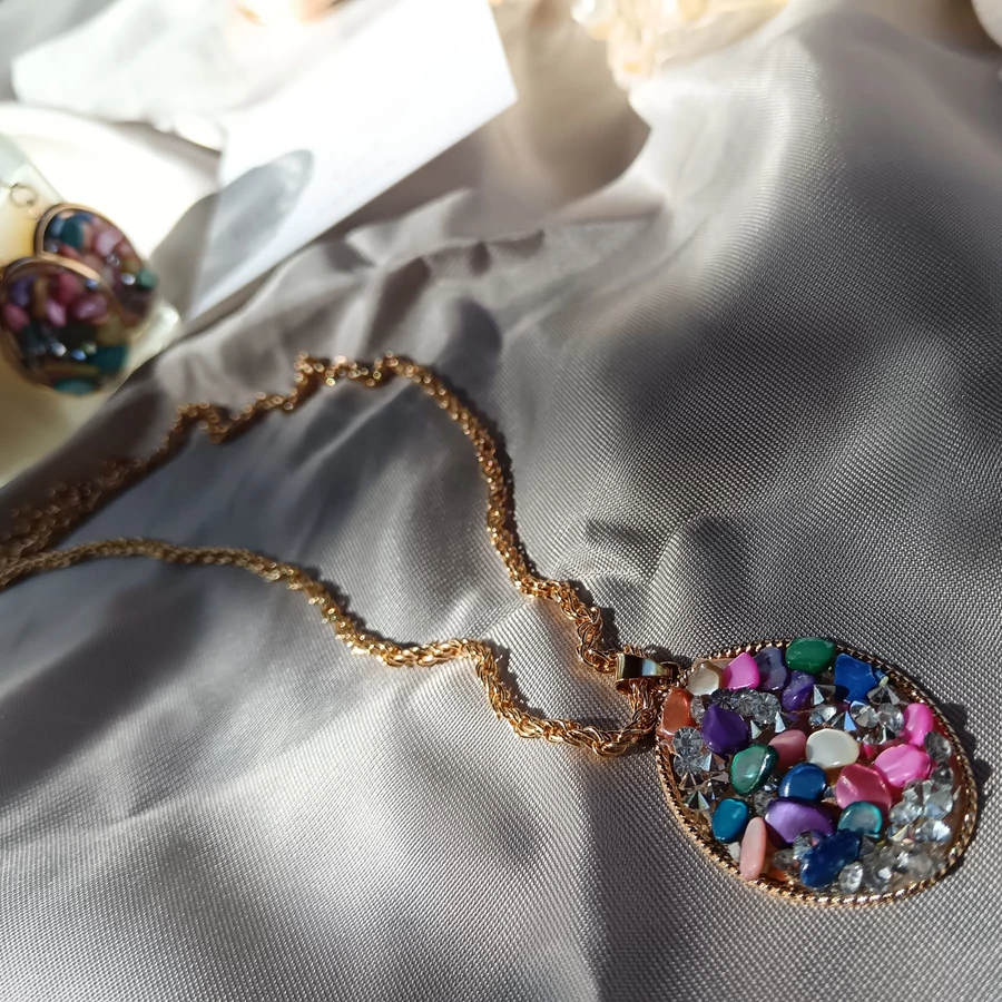 Színes termésköves szett (nyaklánc és fülbevaló)