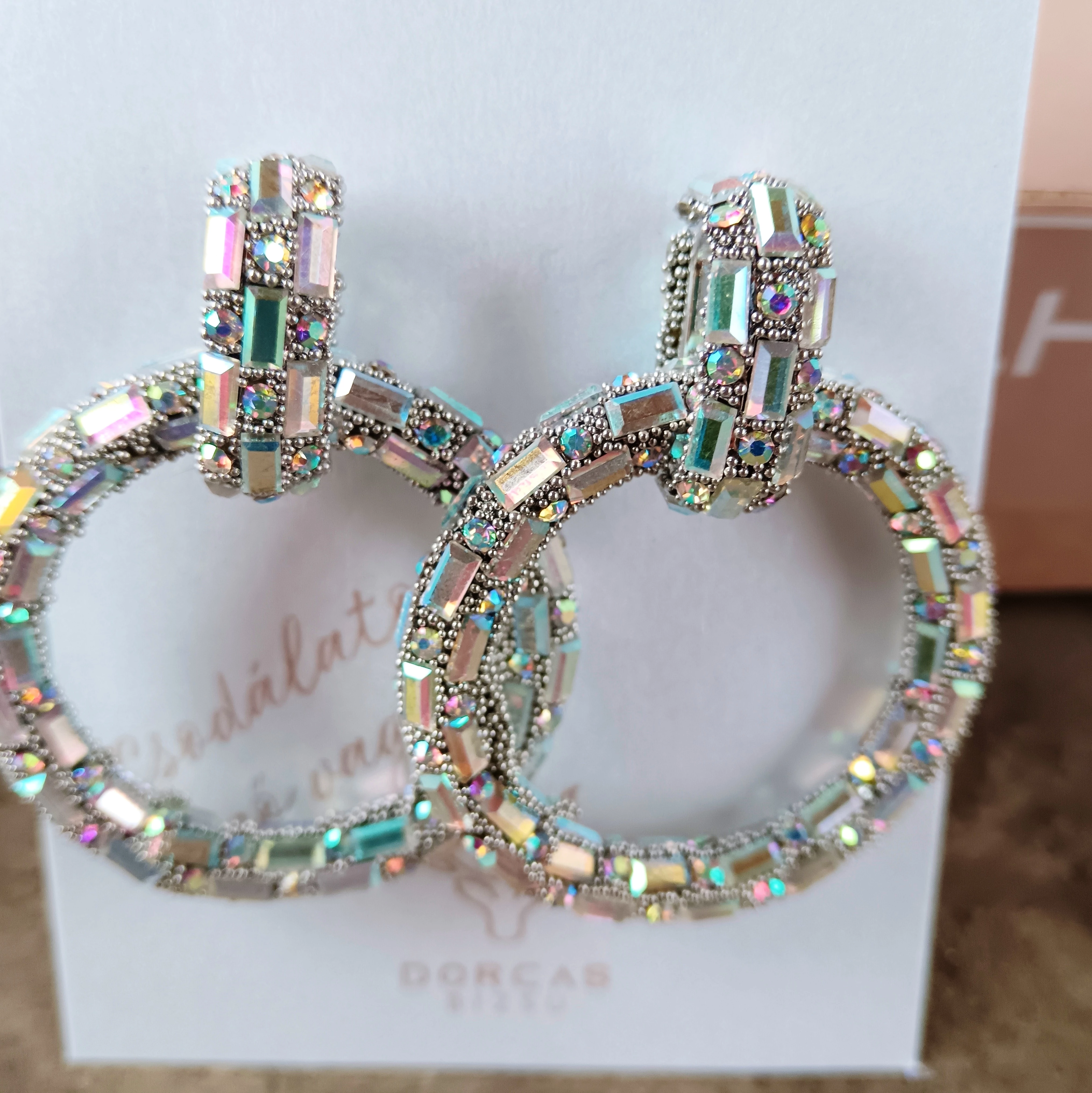 Különleges darab, apró tükör elemekből áll össze, gyönyörű szivárvány-ezüst színű fülbevaló