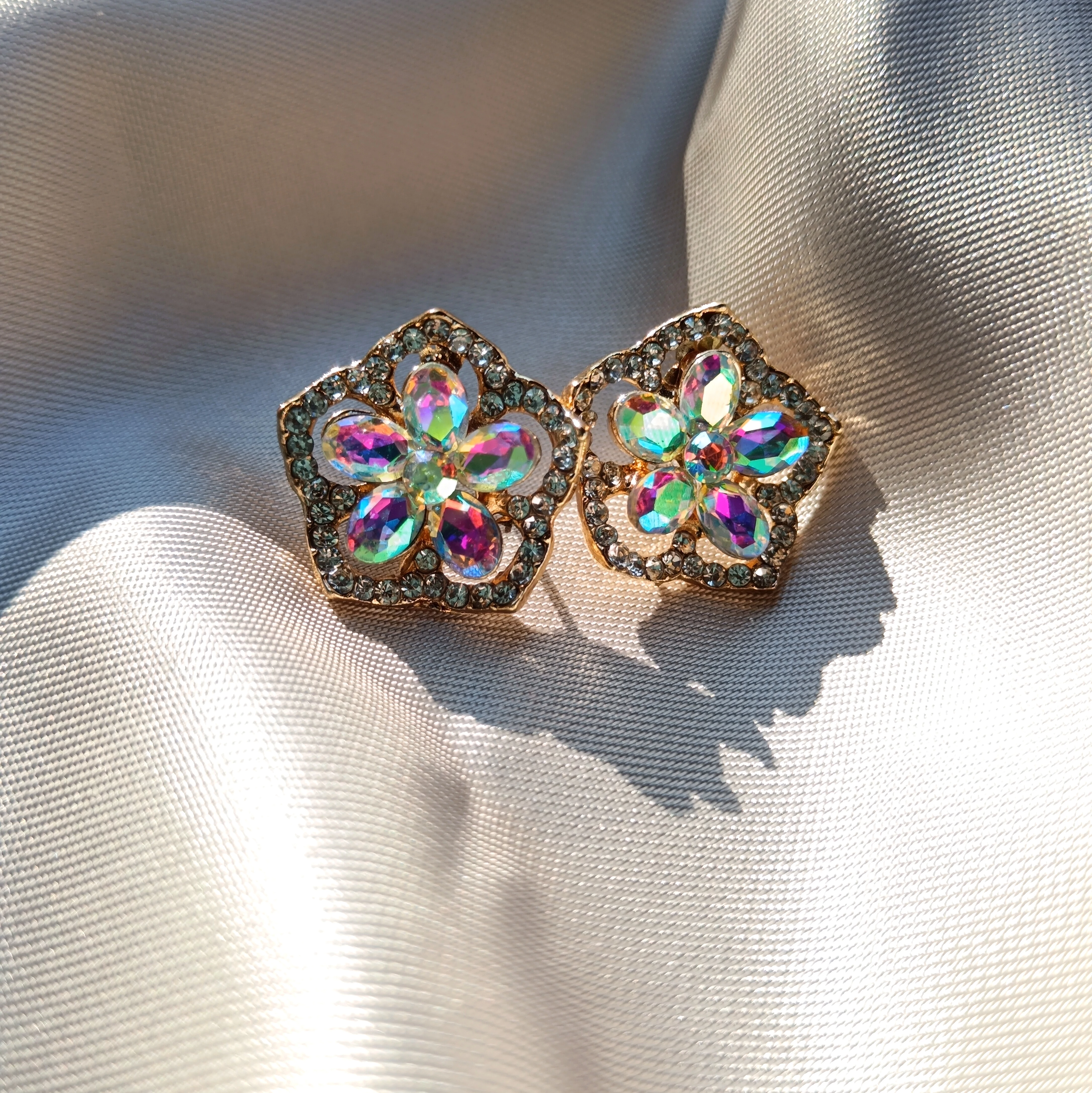 Szivárvány köves virágos fülbevaló