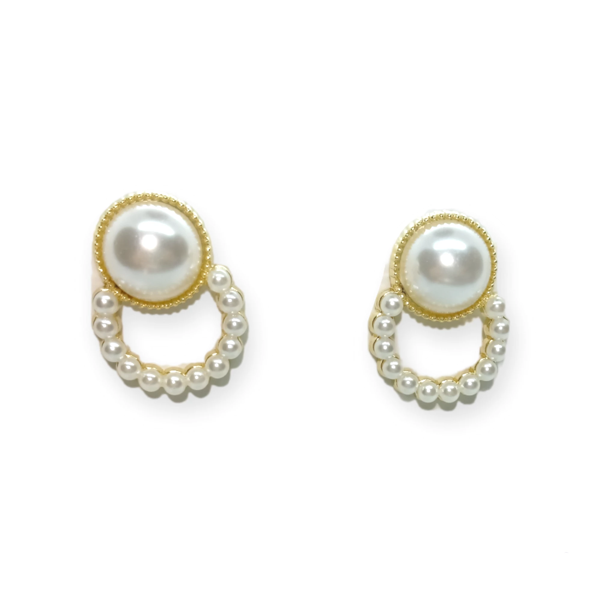Kis beszúrós fülbevaló, mely az arany bevonata mellett teklagyöngyökkel lett felöltöztetve.