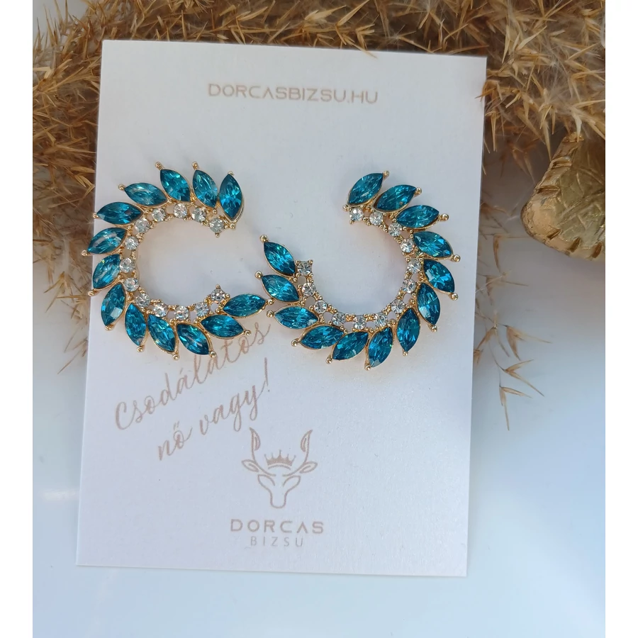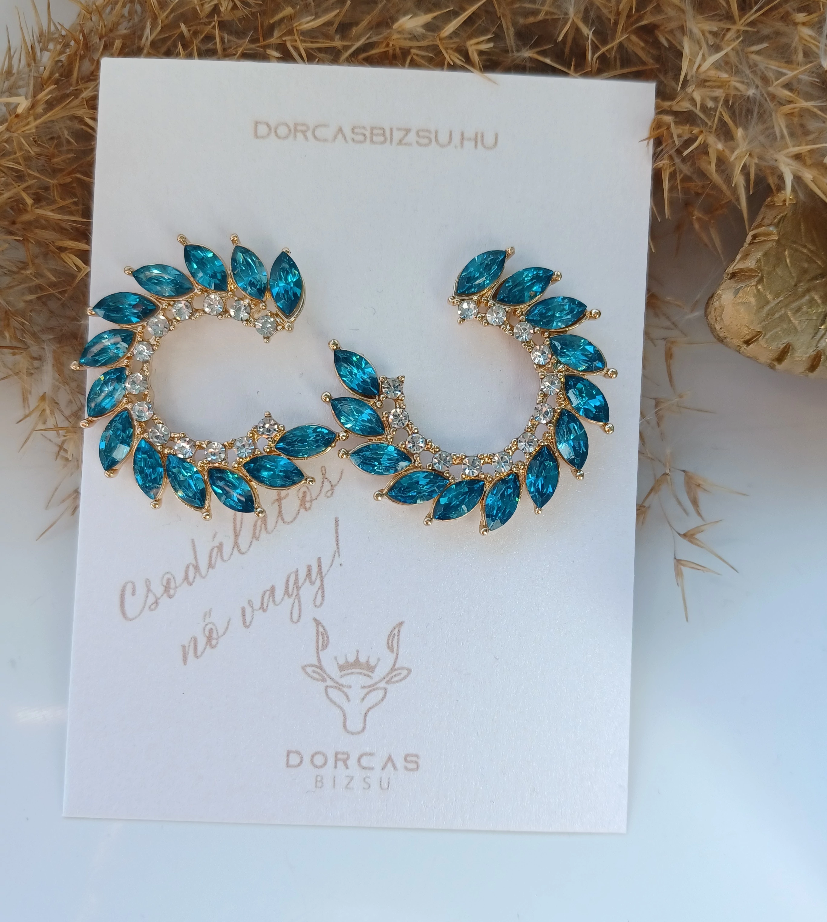 Ez a fülbevaló a türkiz kollekciónk éke. Lógós, kövekkel kirakott fülbevaló