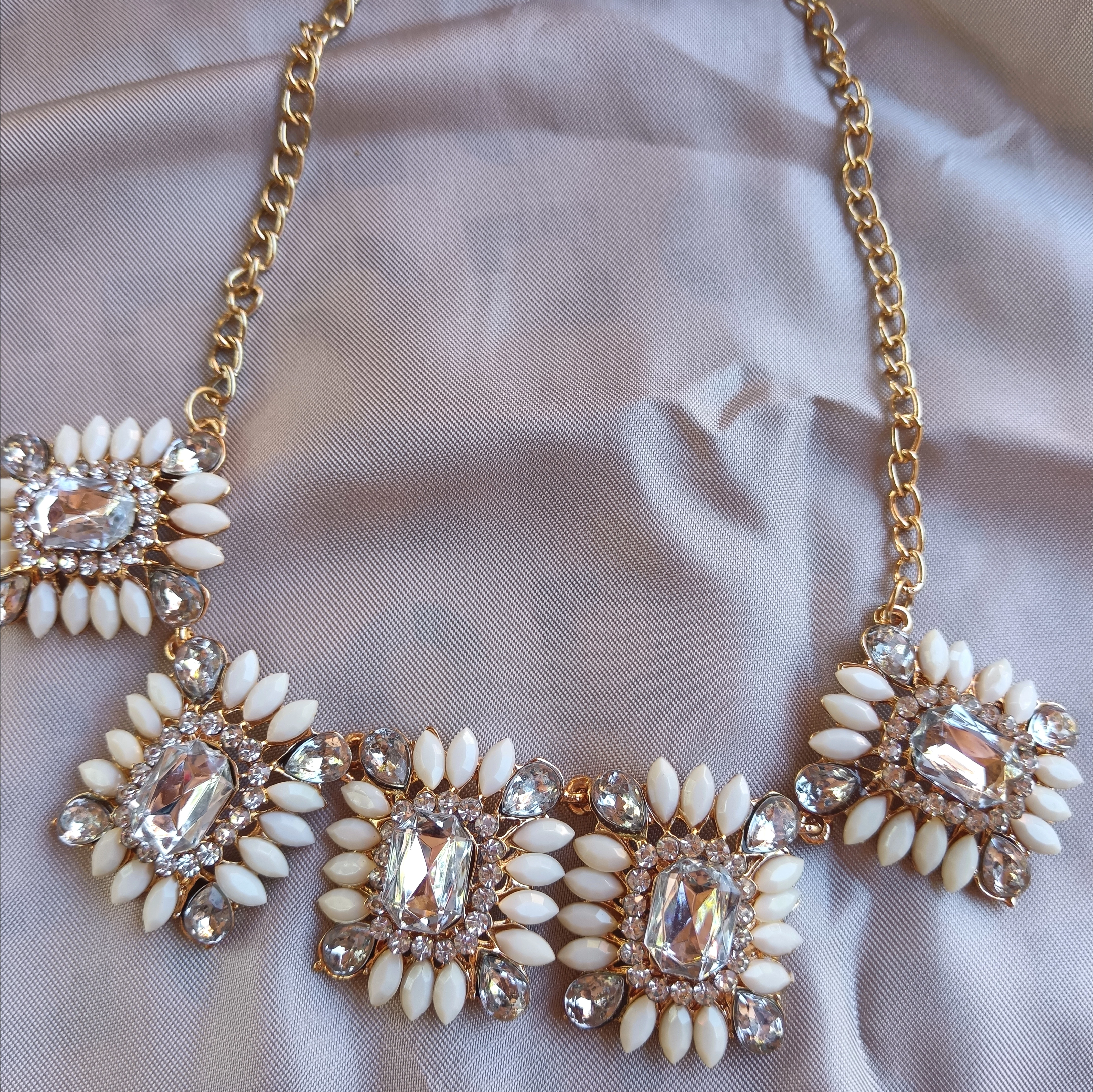 Virágos fehér-köves nyaklánc (ekrü)