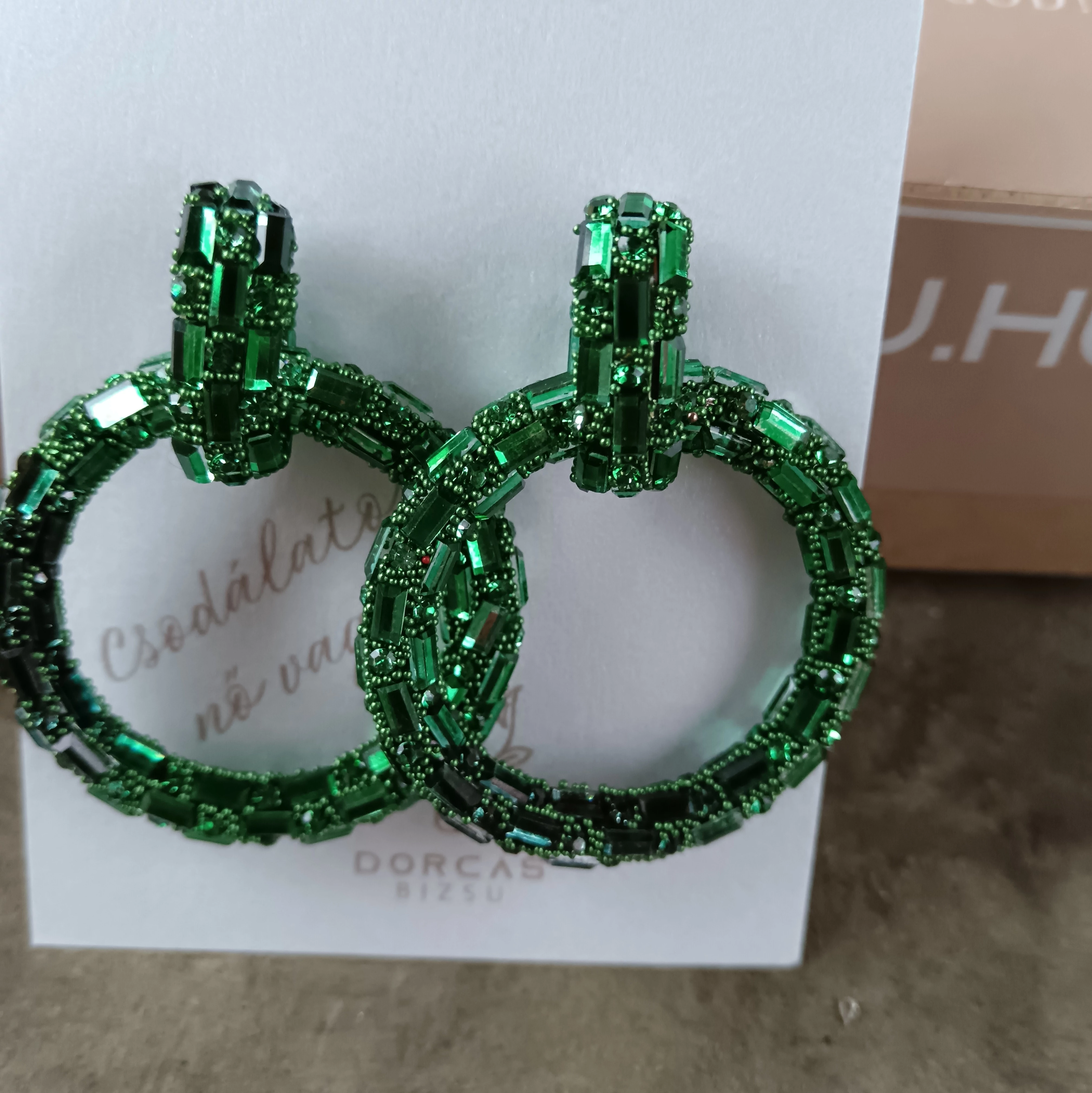 Különleges darab, apró tükör elemekből áll össze, gyönyörű zöld színű fülbevaló